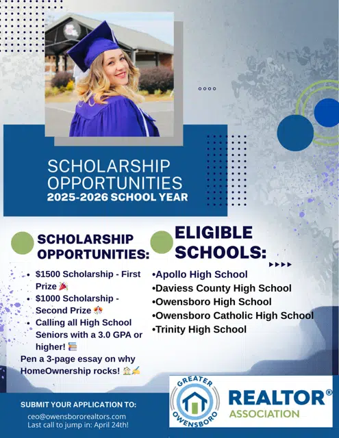 The Greater Owensboro REALTOR® Association is offering two scholarships during the 2025-2026 school year.