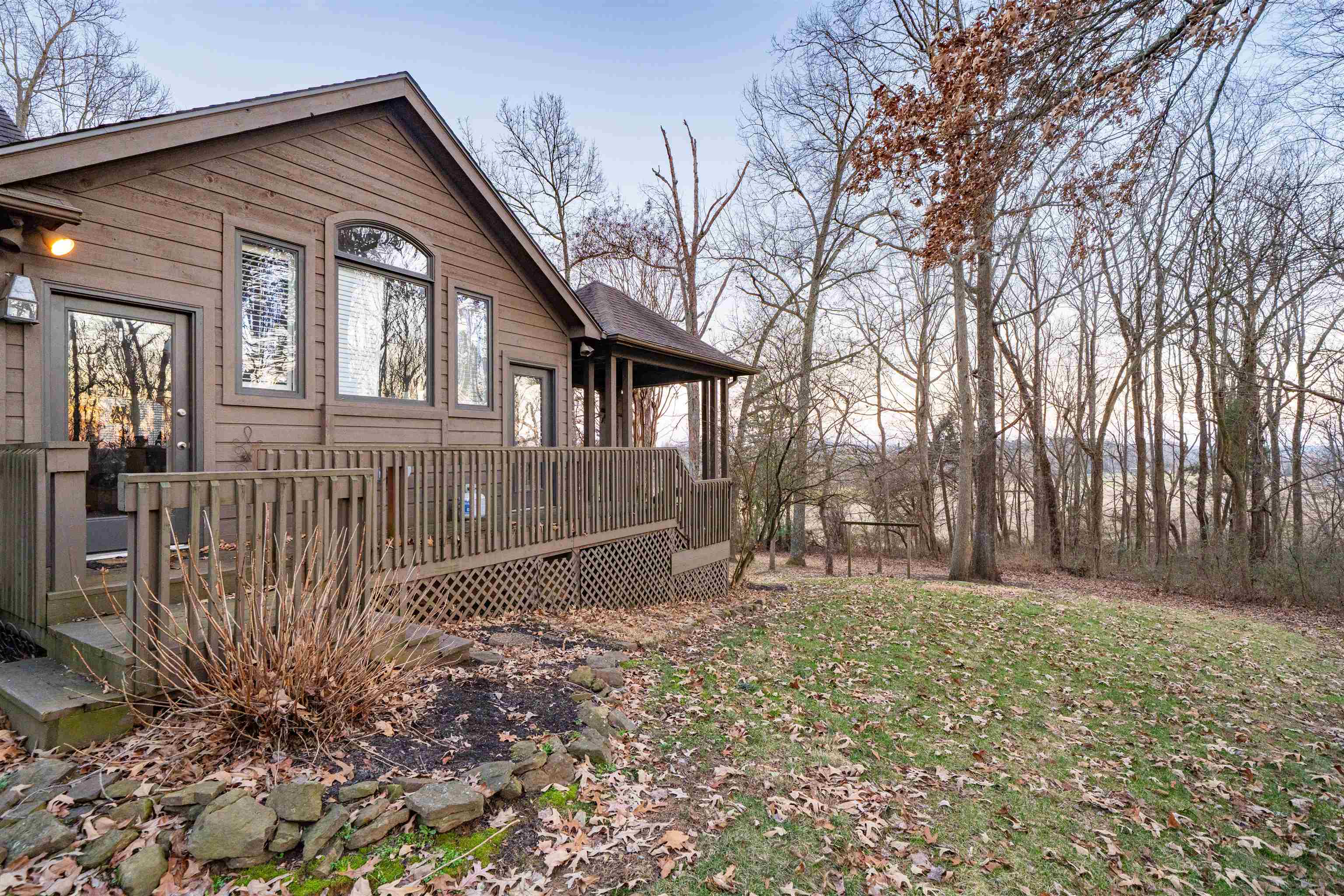 - Exterior Features: Asphalt Drive, Cable Available, Deck, Landscaped, Porch Back, Scenic, Secluded, Trees/Wooded